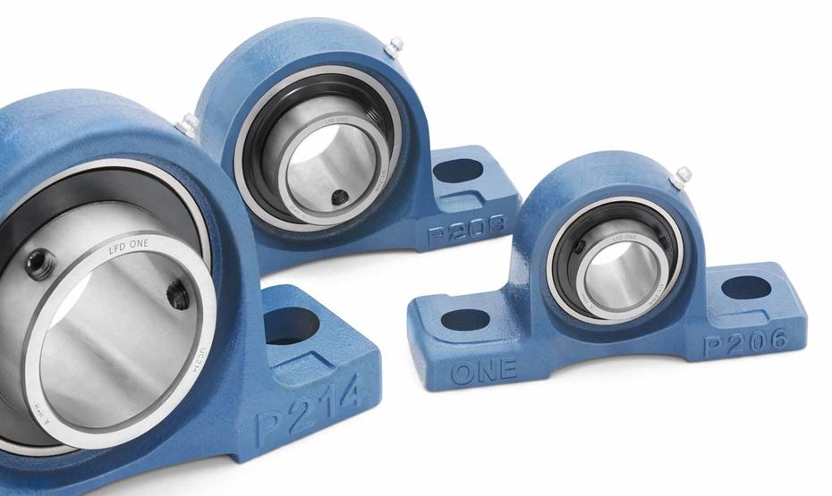 La nueva serie de soportes LFD-ONE es el resultado de una amplia reducción del peso, sin por ello haber perdido estabilidad o resistencia. Los anillos exteriores son redondeados, de forma que el rodamiento encaja en la carcasa de esfera hueca. Los soportes de la serie ONE son estancos en ambos lados y van rellenos con grasa de litio. Para proteger los rodamientos de las duras condiciones de la industria agropecuaria, se ha instalado un disco centrífugo adicional que evita que resulten dañados los labios obturadores situados debajo
